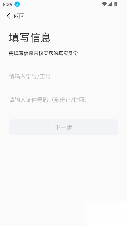 1、输入学工号,证件号,或者身份证号等信息,完成认证登录
