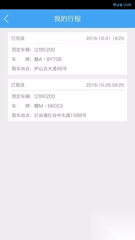 选择的行程设定详细的车辆信息与取车的地点信息等;