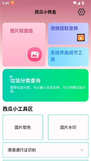 西瓜小铁盒助力用户更高效地使用工具,为你呈上丰富多样的工具类型。用户能更便捷地在线设置工具,超多实用工具等你来体验。无论是图片处理、文件格式转换,还是音频提取、图片取色等操作,用户都可随时进行,工具分区十分全面。