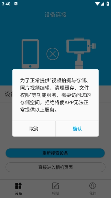 务必保证Gimbal Pro电量充足,电量若低于20%,可能会对连接稳定性产生影响。