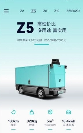 用户可以查看各个无人驾驶车辆的具体参数配置信息,可以提前了解车辆的实际参数型号。