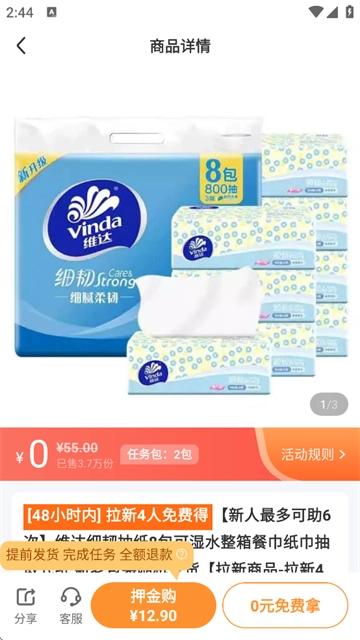 签到次数累计到指定数量,上一笔订单押金自动返还,助力购物更愉快;