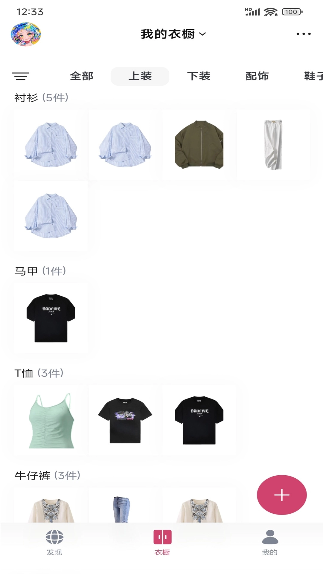 2、在衣橱页面中可以进行分类管理,还可以及时的进行添加不同类目;
