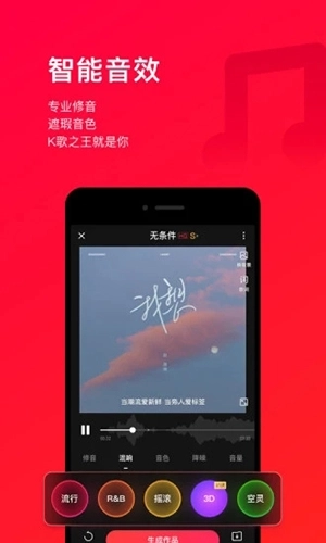 1.你可以选择任何一首歌,强大的音效,让你拥有一种在录音棚里唱歌的感觉!