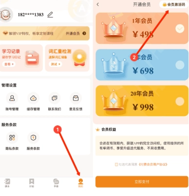 步骤二:进行注册登录操作,在相应位置输入激活码以开通会员。
