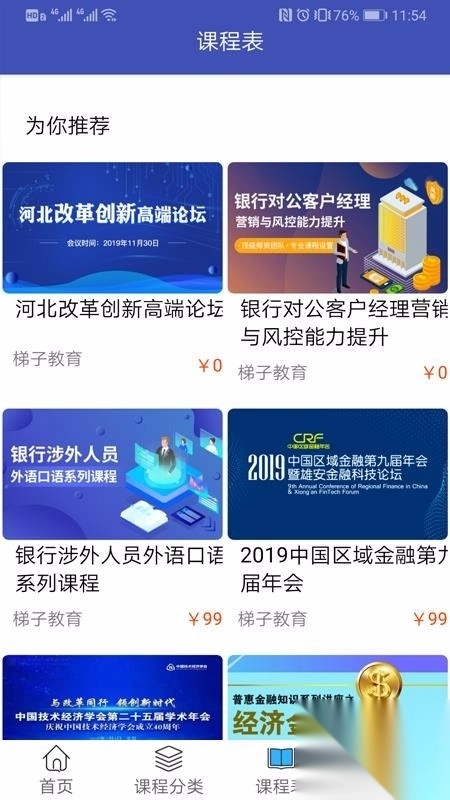 4、进入课程表页面,就能看到系统推荐的学习课程