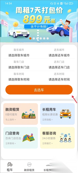 天下行租车app如何租车