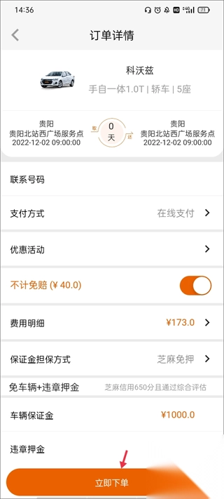 4、查看订单详情界面,确定全部信息之后就可以立即下单了。