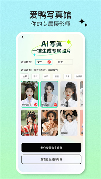 爱鸭写真馆 爱鸭写真馆是一款专业的拍照应用,提供了多种滤镜、特效和素材,让你可以随时随地美化和编辑照片。其滤镜、特效和素材库种类繁多,涵盖了各种风格与主题,帮助你创作出独一无二且令人惊艳的照片。如果你感兴趣的话,不妨下载来体验一番。