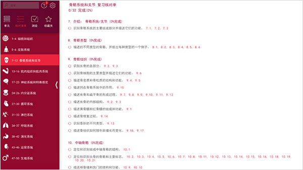 2、点击核对清单可以复习你当前分类的核对单,了解自己的对知识的掌握情况。