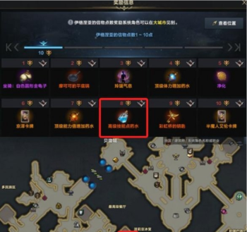 每当你将一个大陆的百科进度完成至100%,就能获得一个伊格涅亚的信物。集齐8个伊格涅亚的信物后,可以在大城市的指定NPC处兑换一瓶高级技能点药水。该NPC位于贝隆北部。
