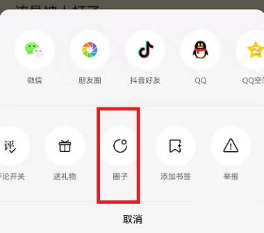 3.这时页面下方会弹出一个窗口,在其中找到“圈子”这一项后在上面点击选择。