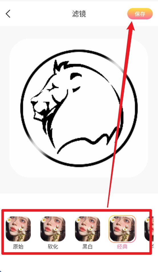 4. 在滤镜页面挑选你喜欢的风格,然后点击右上角的保存按钮。