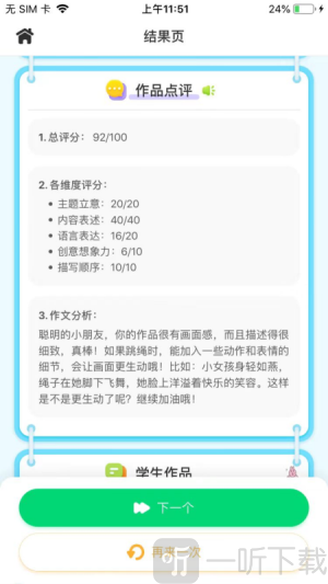 4)浏览作文分析,进入评论页面,获得改进建议并提升写作技能。