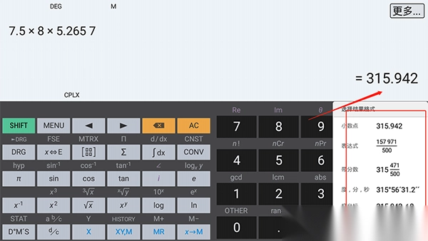 4、输入数字得到答案,点击更多