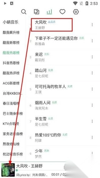 1. 挑选自己喜爱收听的列表,然后直接点击音乐的名称。