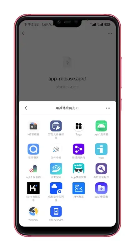 1、APK.1具备安装功能,能够直接处理从微信、QQ接收的安装包文件。