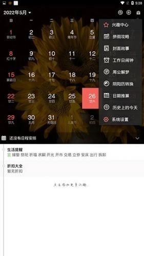 1. 阴历同样可对重要活动进行标记,尤其在周末休假时,会以红色标识,便于人们查看自己心仪的节日。
