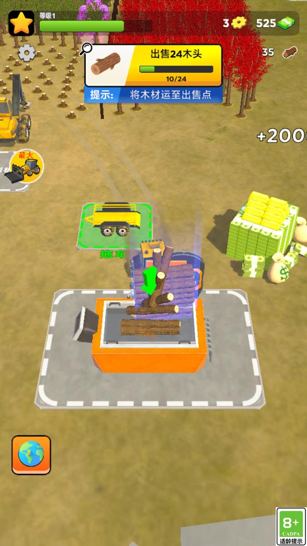 1. 伐木收集:玩家操控推土机穿梭于森林间,精准把控方向进行砍伐,迅速采集木材,体验既紧张又解压的伐木之旅。