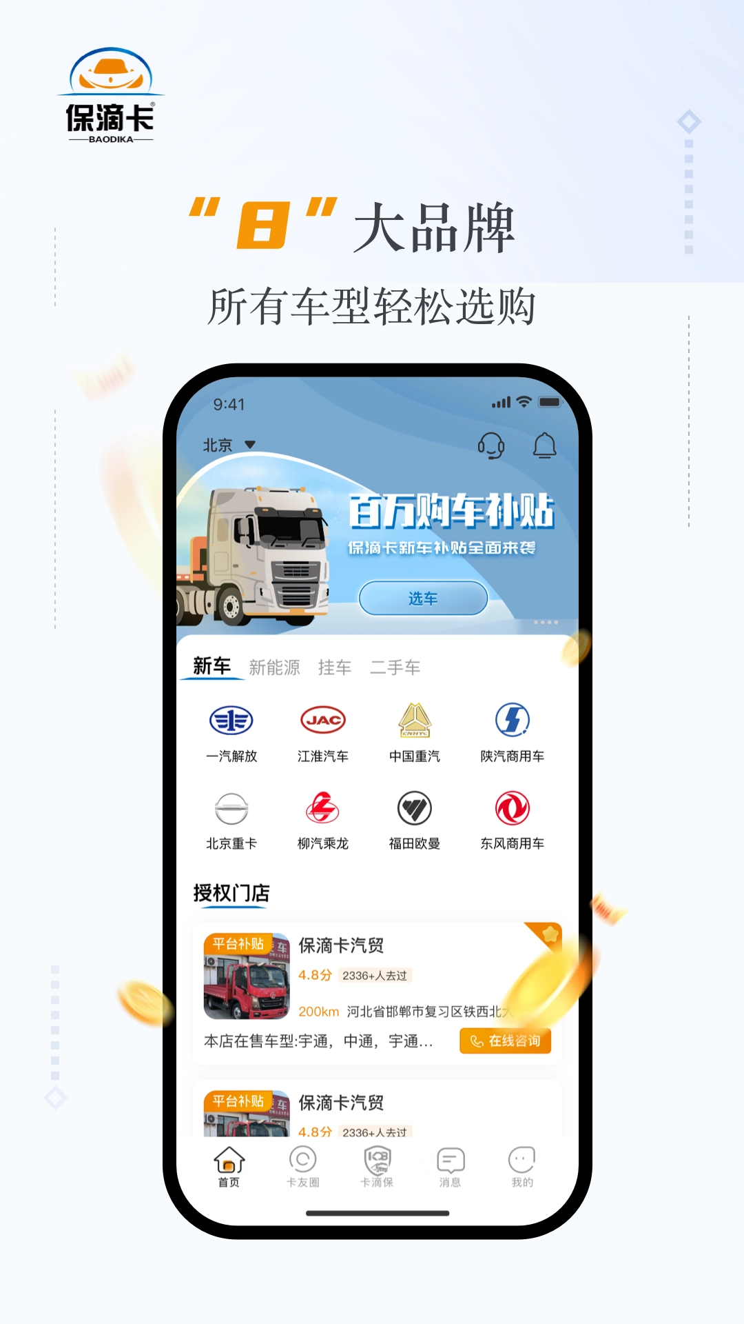保滴卡 保滴卡App是一站式数字化平台,专为卡车、物流车等商用车的全生命周期管理而打造。它覆盖新车交易、二手车评估、金融服务以及后市场服务等全产业链服务,对商用车交易生态进行了重构,正逐步成为推动卡车交易行业发展的关键力量!