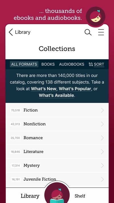 平台提供来自全球40余个国家、数量超3万所图书馆的数字资源,内容包含电子书、有声书以及杂志,并且所有资源均为正版的高清版本。