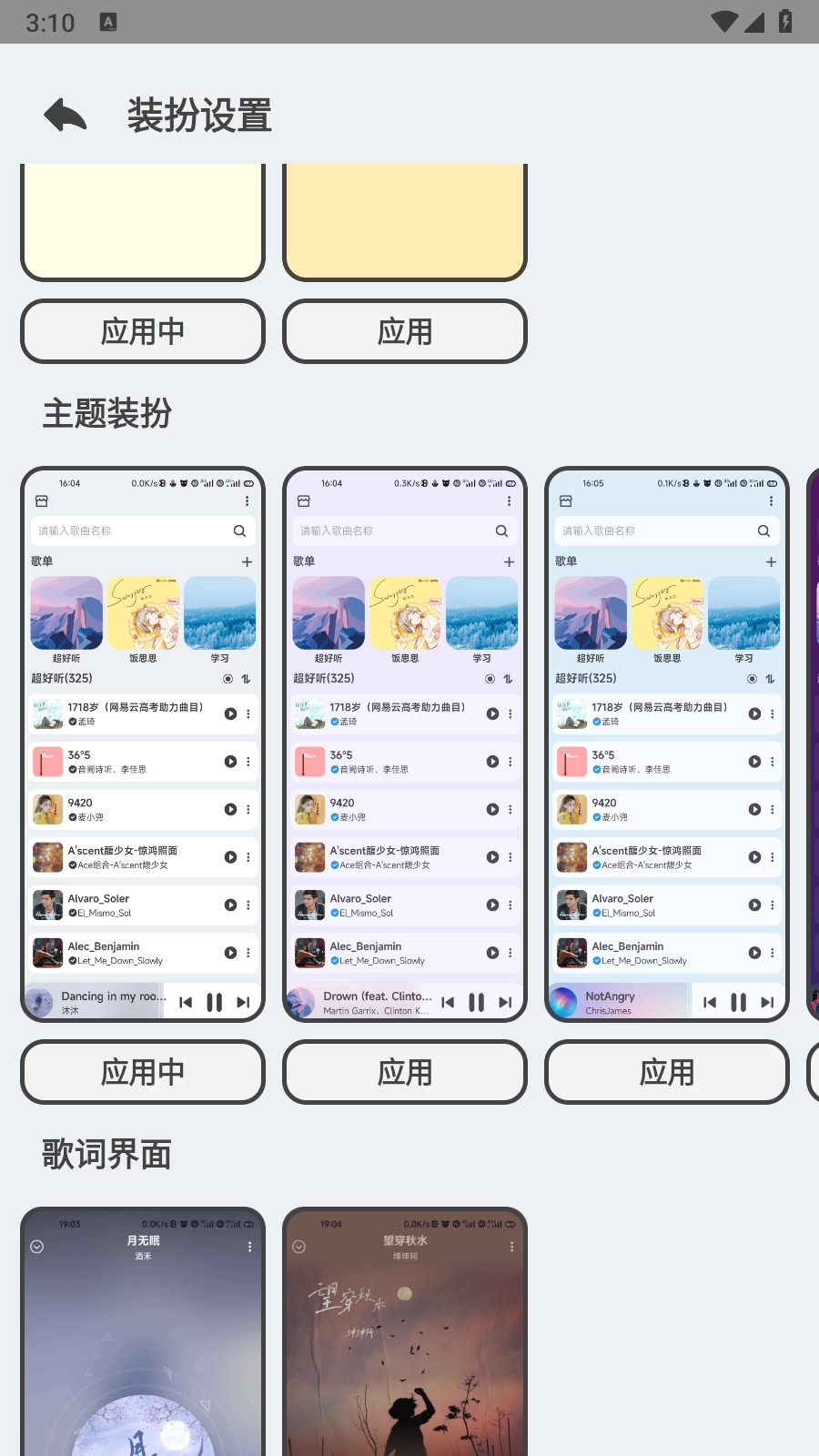 2.进入装扮设置页面,浏览多种不同的主题