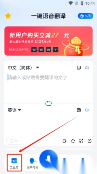 1. 启动软件,点击页面底部的工具库,依据需求挑选相应的翻译方式进行使用。