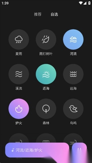 2. 每天为用户推荐各式各样的场景声音,用户能够依据自身喜好来挑选。