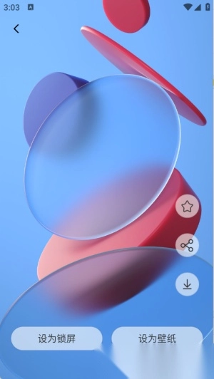 4. 用户点击打开心仪的资源,以壁纸来说,既能够直接将壁纸进行设置,还可以对其进行收藏、分享以及下载操作。