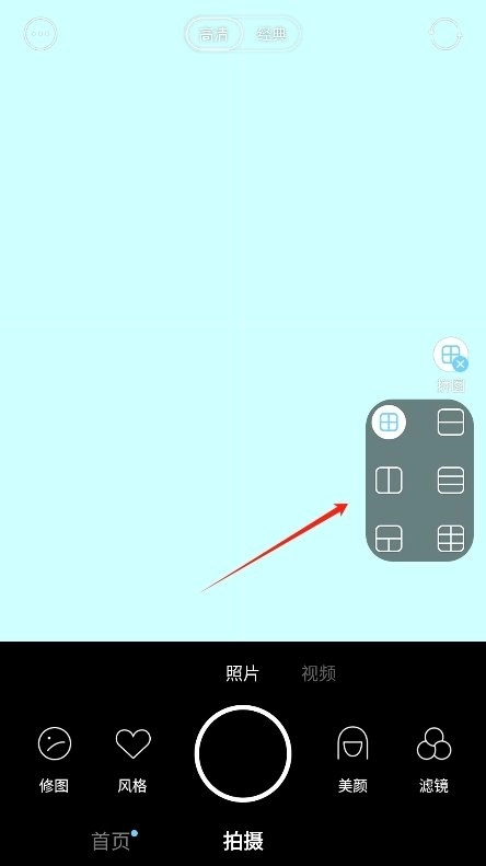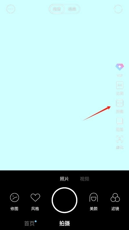 1. 在拍摄界面的右侧,你可以发现拼图功能,点击