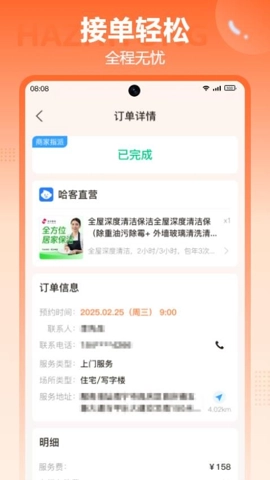 3、用户能够便捷地查看每个订单的详尽信息,像服务内容、费用明细之类,助力用户做出更为明智的接单决定。