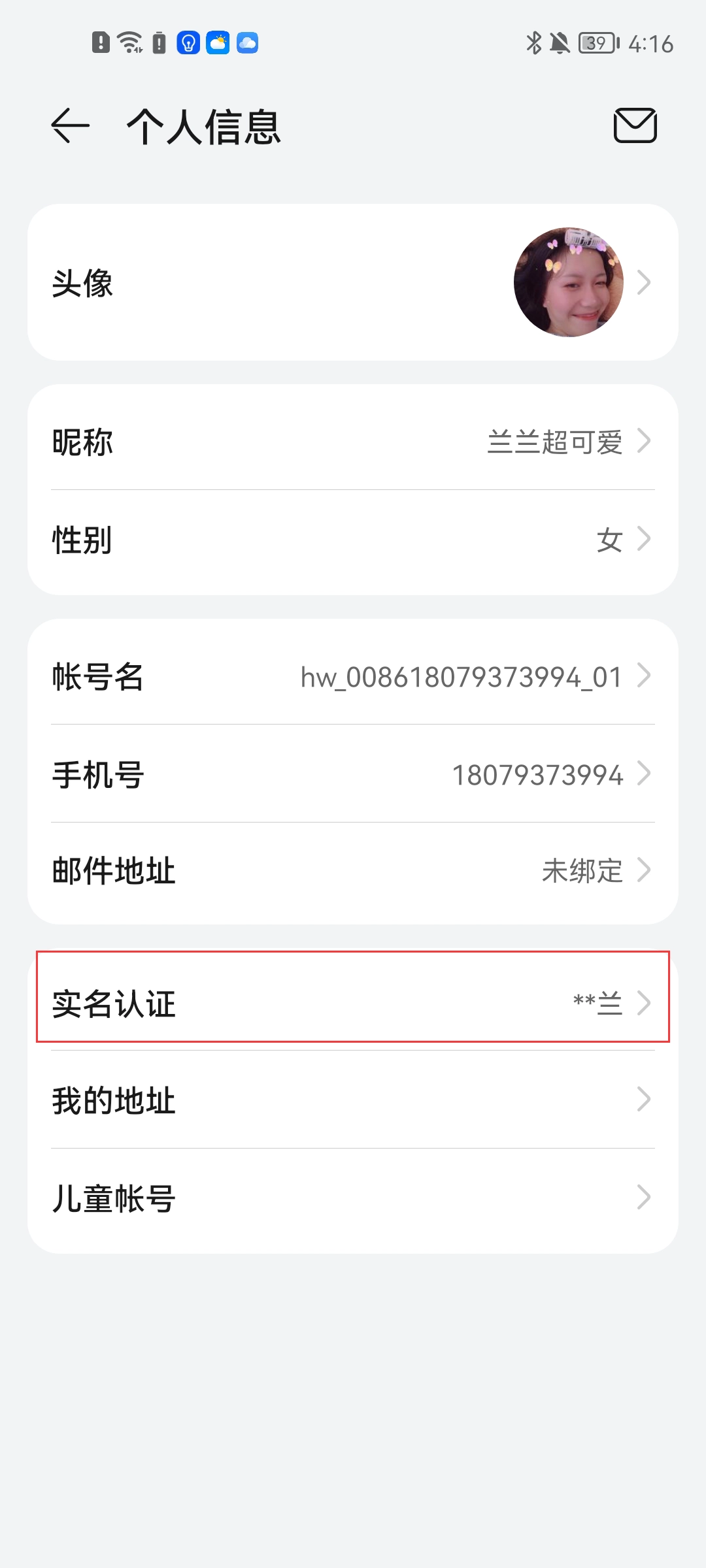4、然后点击实名认证这一选项