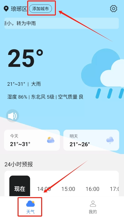 笛笛便民天气怎么添加其他城市天气