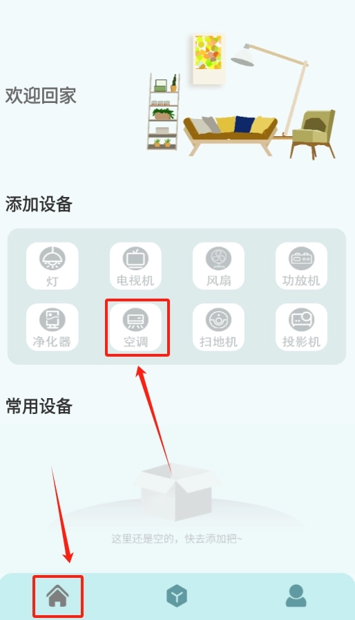 1、打开空调智能控软件,在首页找到 “空调” 选项并点击进入。
