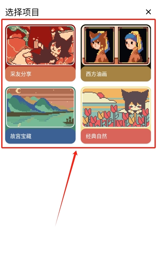 2、来到主题选择页面,可挑选心仪的像素风插画主题,也能通过联动「色采」应用获取更多主题。