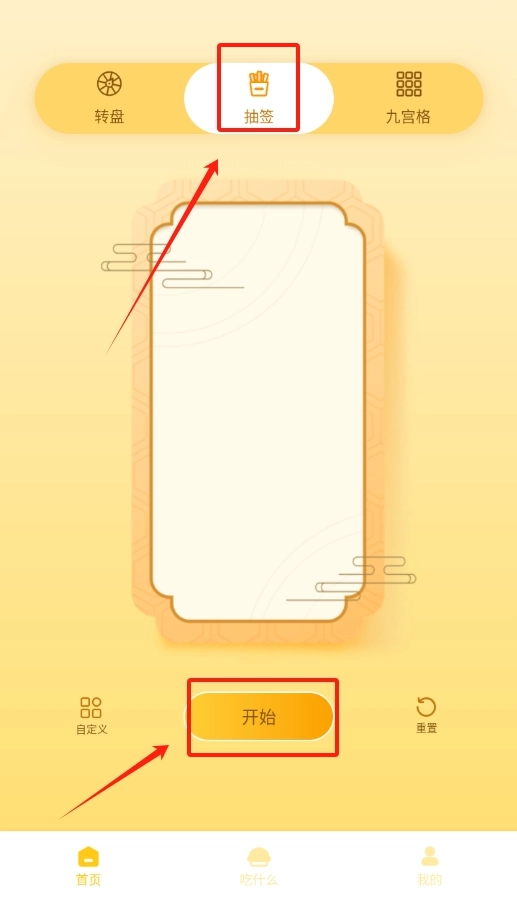2、在软件首页,除了转盘,还有抽签选项,点进去就能通过抽签来决定吃什么。