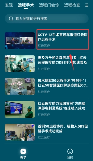2、进入"远程手术"专区,选择"远程手术"板块,浏览相关技术文档与视频资料。