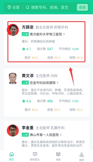 2、浏览医师列表,查看专业资质和患者评价,选择适合的医生进行咨询。