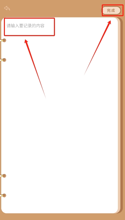 2、于弹出的编辑界面里,录入你想要记录的生活琐事、心情感悟等相关内容,录入完毕后点击“完成”。