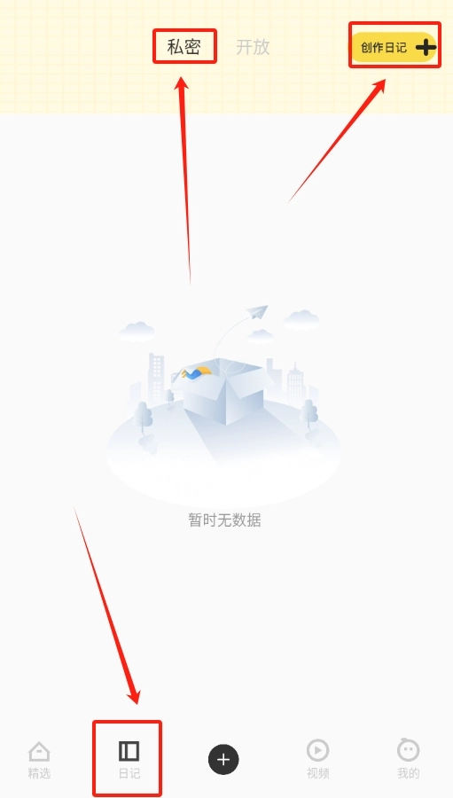 1. 点开good小小笔记软件,进入到日记页面,于私密选项的右上角找寻加号并点击,从而开启日记创作。