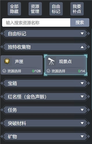 3、支持宏观的查看地图资源整体分布,以便制定高效的刷图路线。