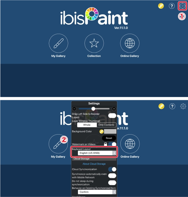 上面的屏幕是 Title 屏幕。首先,点按 ①[ 我的图库 按钮 ]。