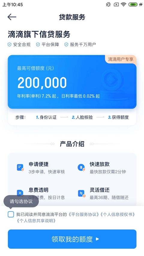 滴滴金融通过滴水贷坚持合法合规运营,与国内多家商业银行、消金公司等持牌、合规的金融机构合作,为用户提供安全的普惠金融产品。