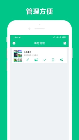 2、用户能够在任意时间对事务名称进行更新,添加详尽的文字说明,事务助手还能插入相关图片。