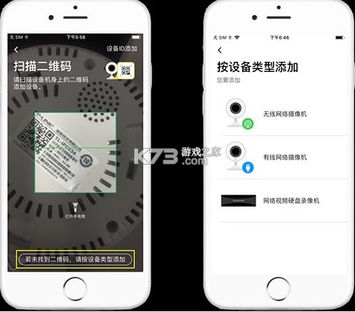 对于一些没有二维码或不方便扫描二维码的无线摄像头,可以按照设备类型进行添加