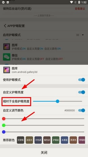 1. 第一步,我们要进行上滑操作,在下方找到“启用app自定义护眼配置”选项,开启此功能后,便能看到“编辑app护眼配置”。