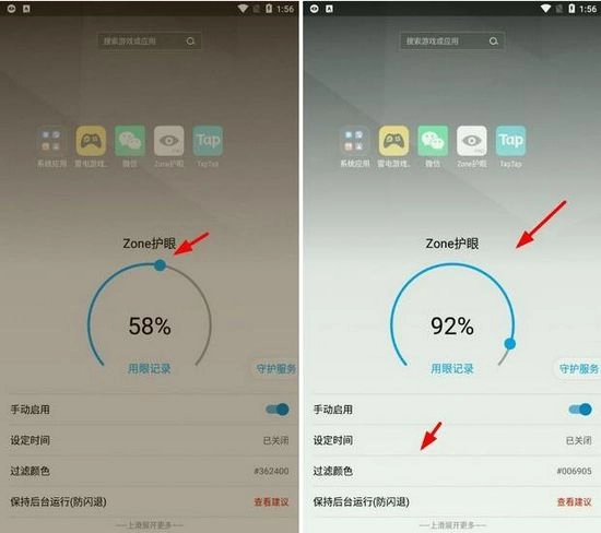 这实际上取决于个人喜好,小编没办法给出最适配的配置。就好比小编自己觉得角色设置为58%是让眼睛最舒适的配置,然而小编同事却认为92%加上绿色才是最舒适的模式。所以若想找到最适合自己的配置,还得用户自行在zone护眼app里进行调试。