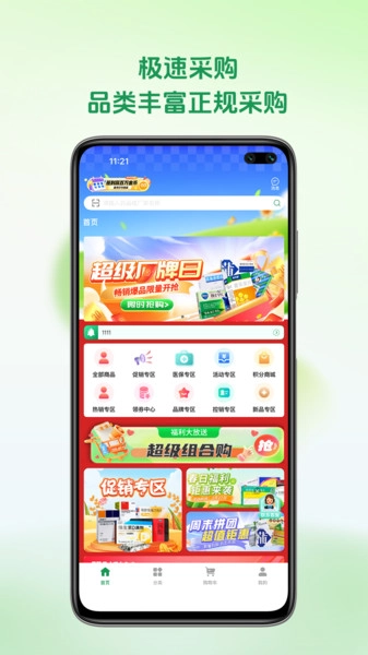 2、首页推送的药物类型很丰富,超省钱且便捷的购物商城。