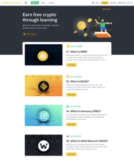 1. 登录安币账户,然后访问安币学院的[边学边赚]着陆页面。在这里,您能看到可用课程的清单,以及完成课程后可获得的加密货币奖励金额。