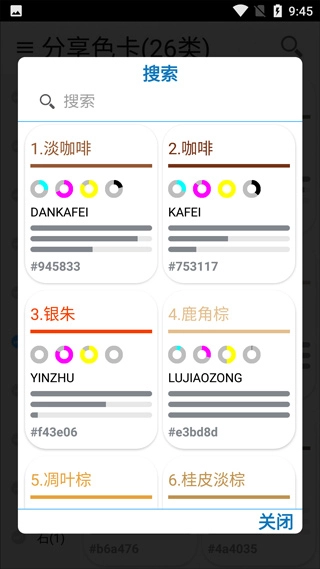 2、在菜单键中除了中国颜色,还可以切换完整色卡
